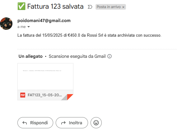 “Ehi agente, ogni volta che ricevo un’email con fattura allegata, salvala in Google Drive, leggi l’importo e aggiorna il mio file contabilità. E se è da pagare, avvisami su Telegram.”