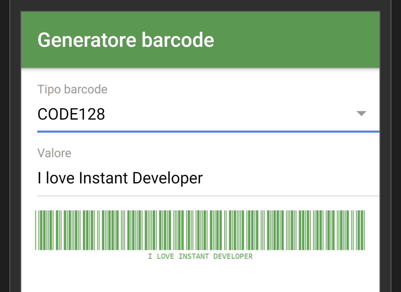Il progetto generazione-barcode che trovate tra i progetti pubblici di Instant Developer Cloud mostra l’utilizzo della libreria.